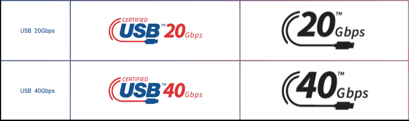 USB-IF logos (“USB 20Gbps,” “USB 40Gbps,” and power logos) are reserved for products that have passed USB-IF compliance; misuse is strictly prohibited. That’s your signal a USB product has been through the USB-IF test gauntlet.